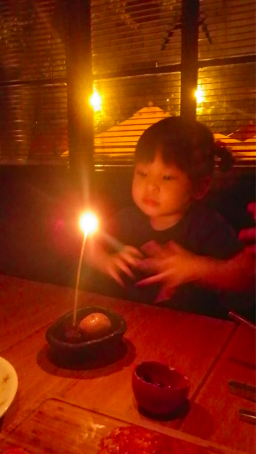 Birthday ice cream! ロウソクを付けて貰った!
