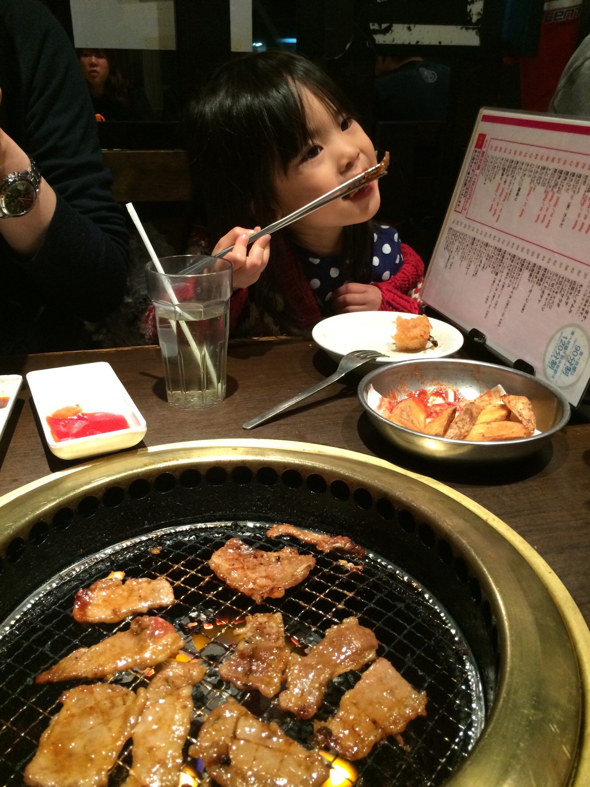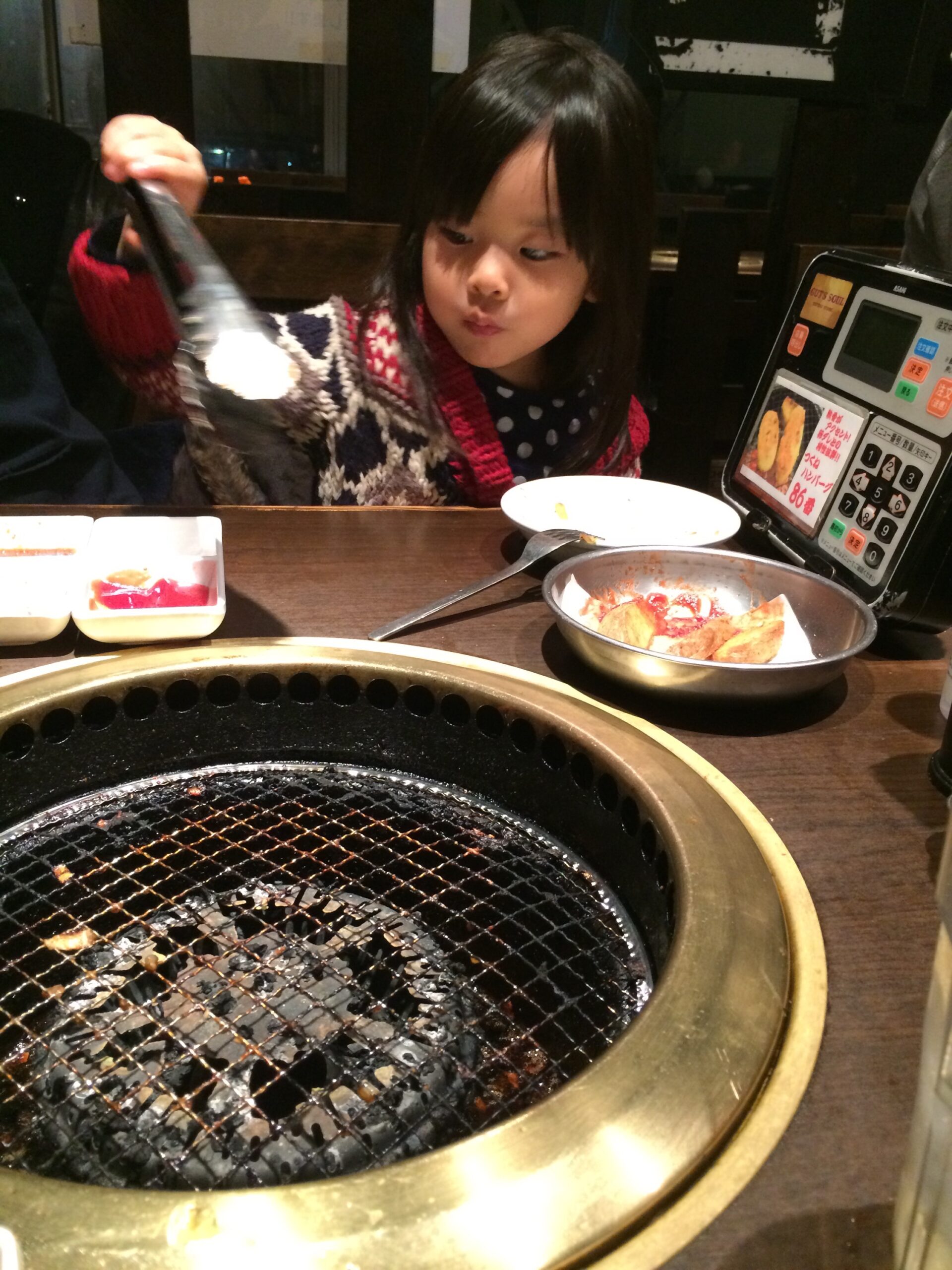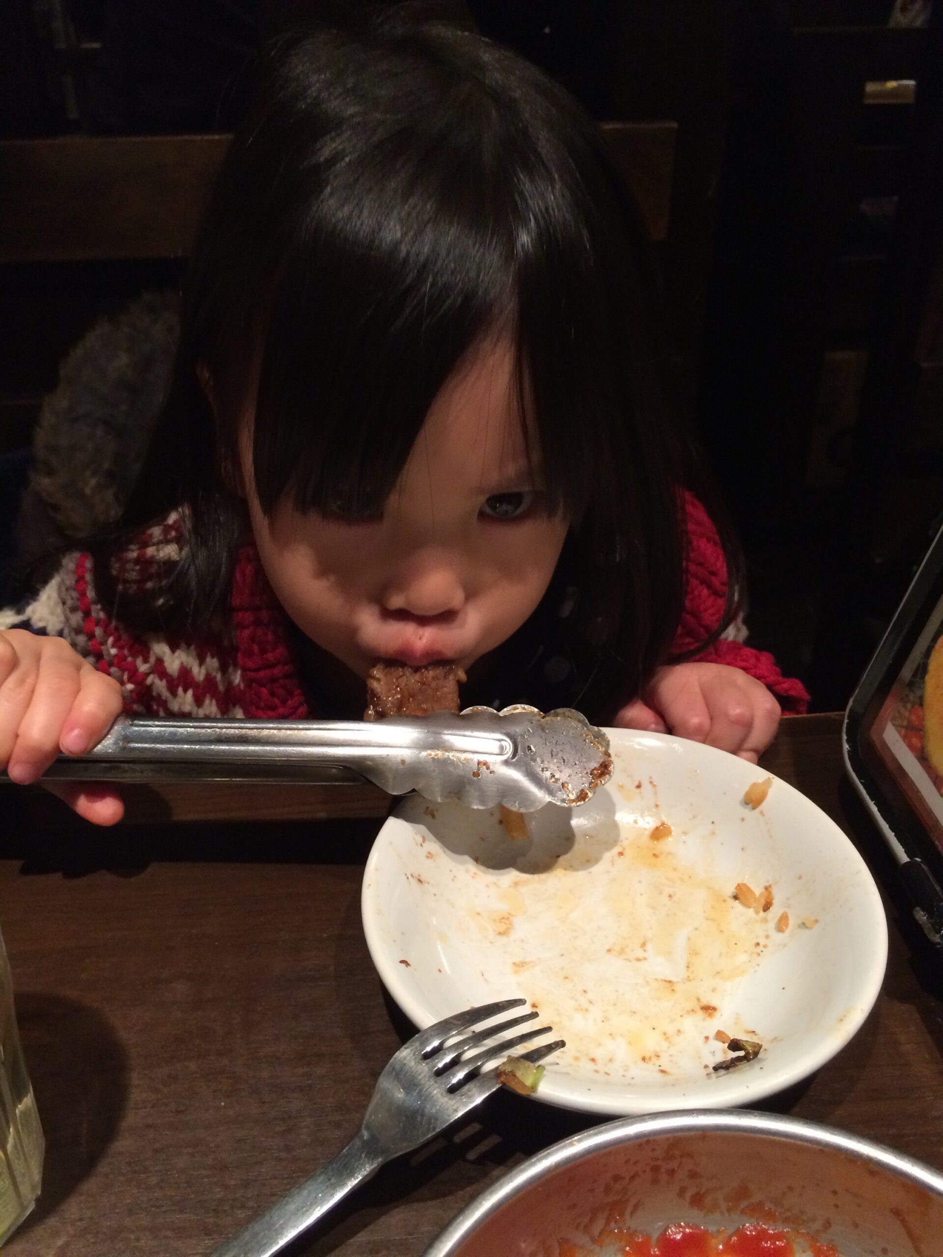 トングを使って肉をじゅうじゅう〜したい海璃。