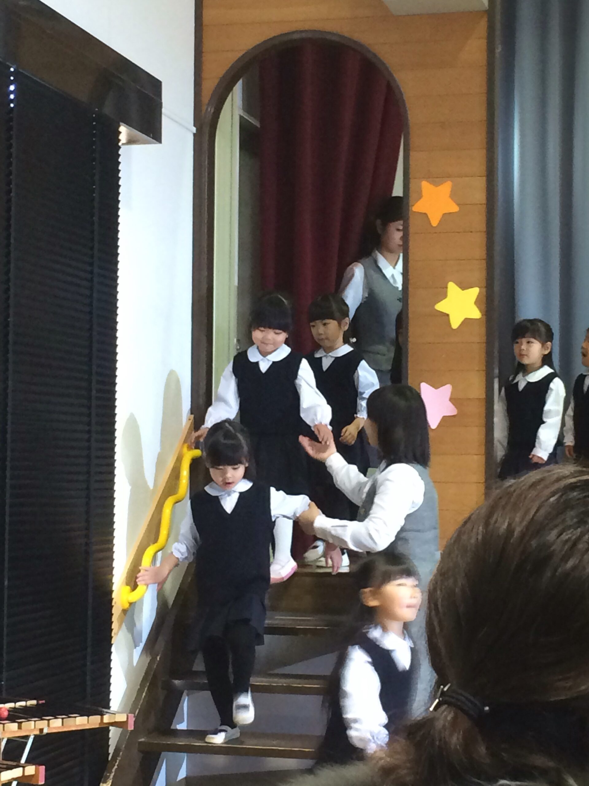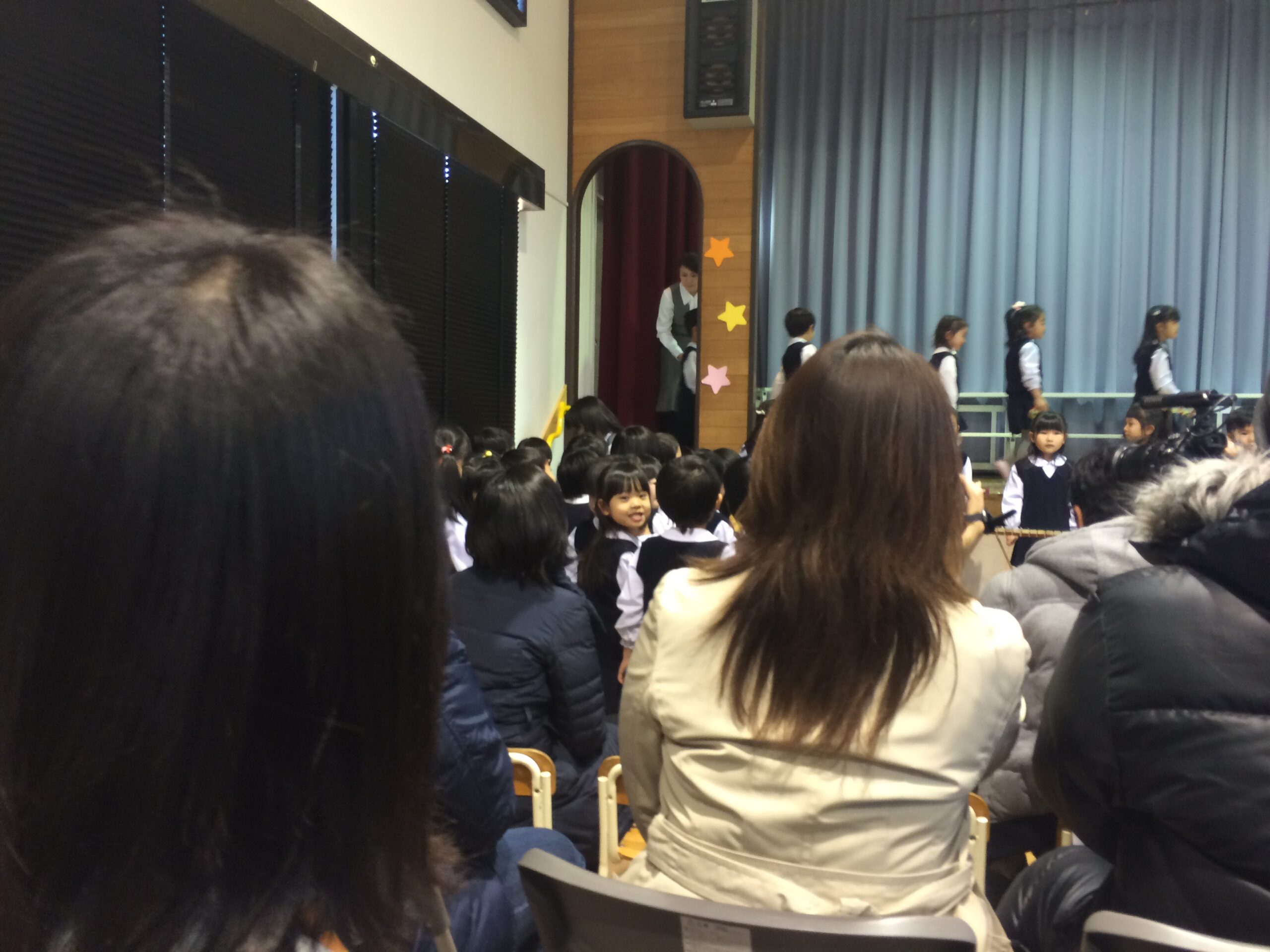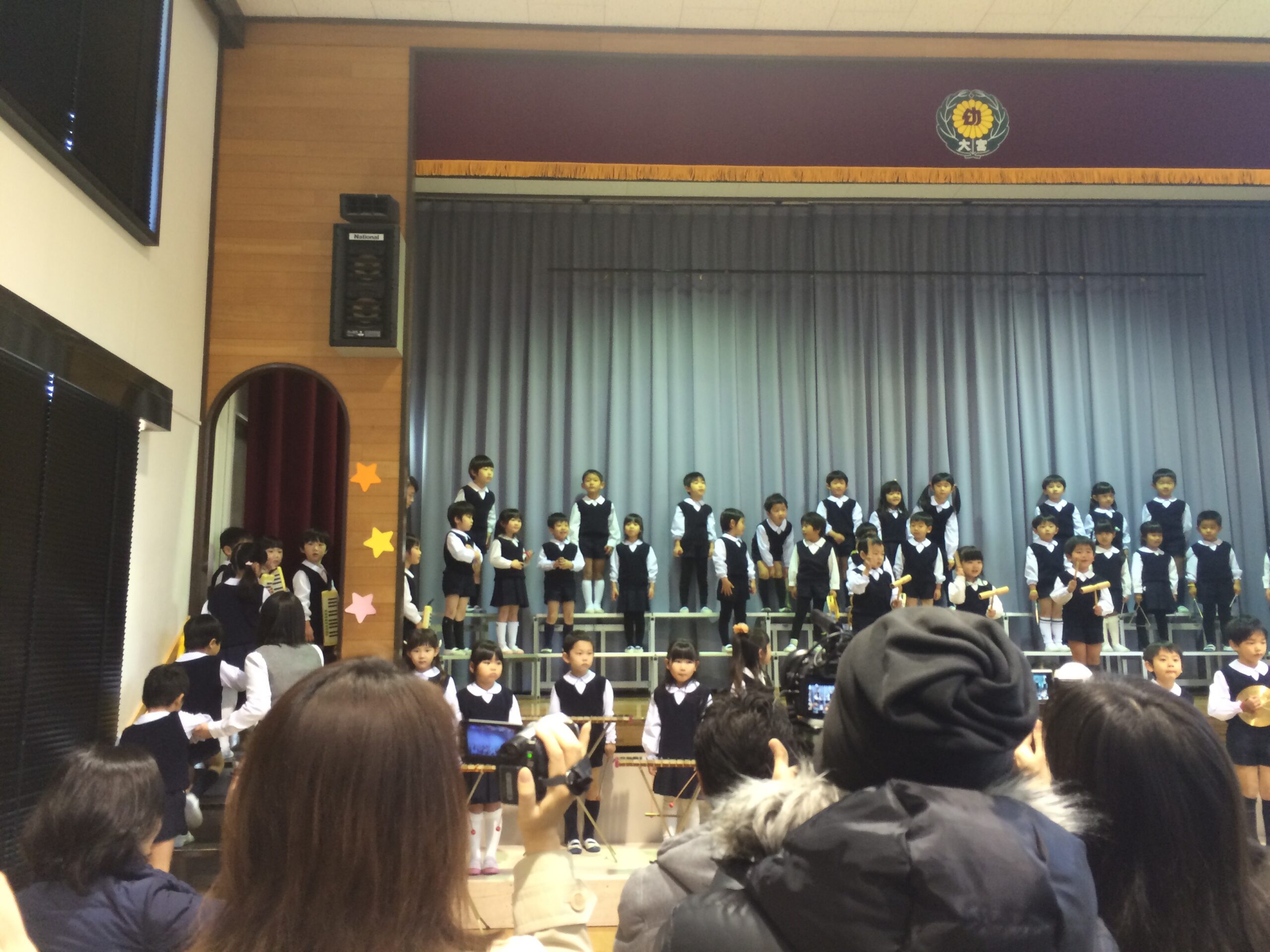 今日は音楽会。満員の観客席の間を通って園児入場!
