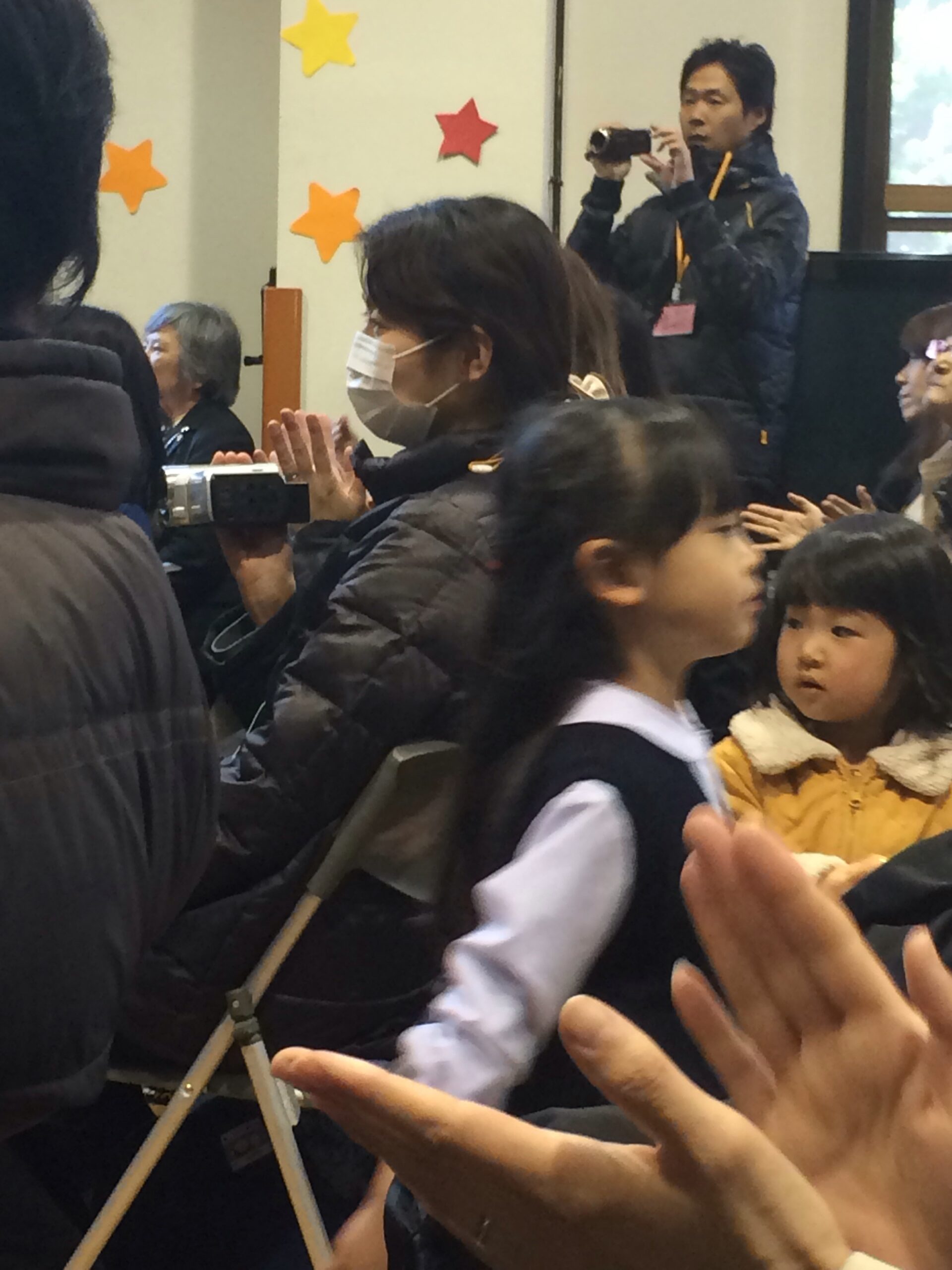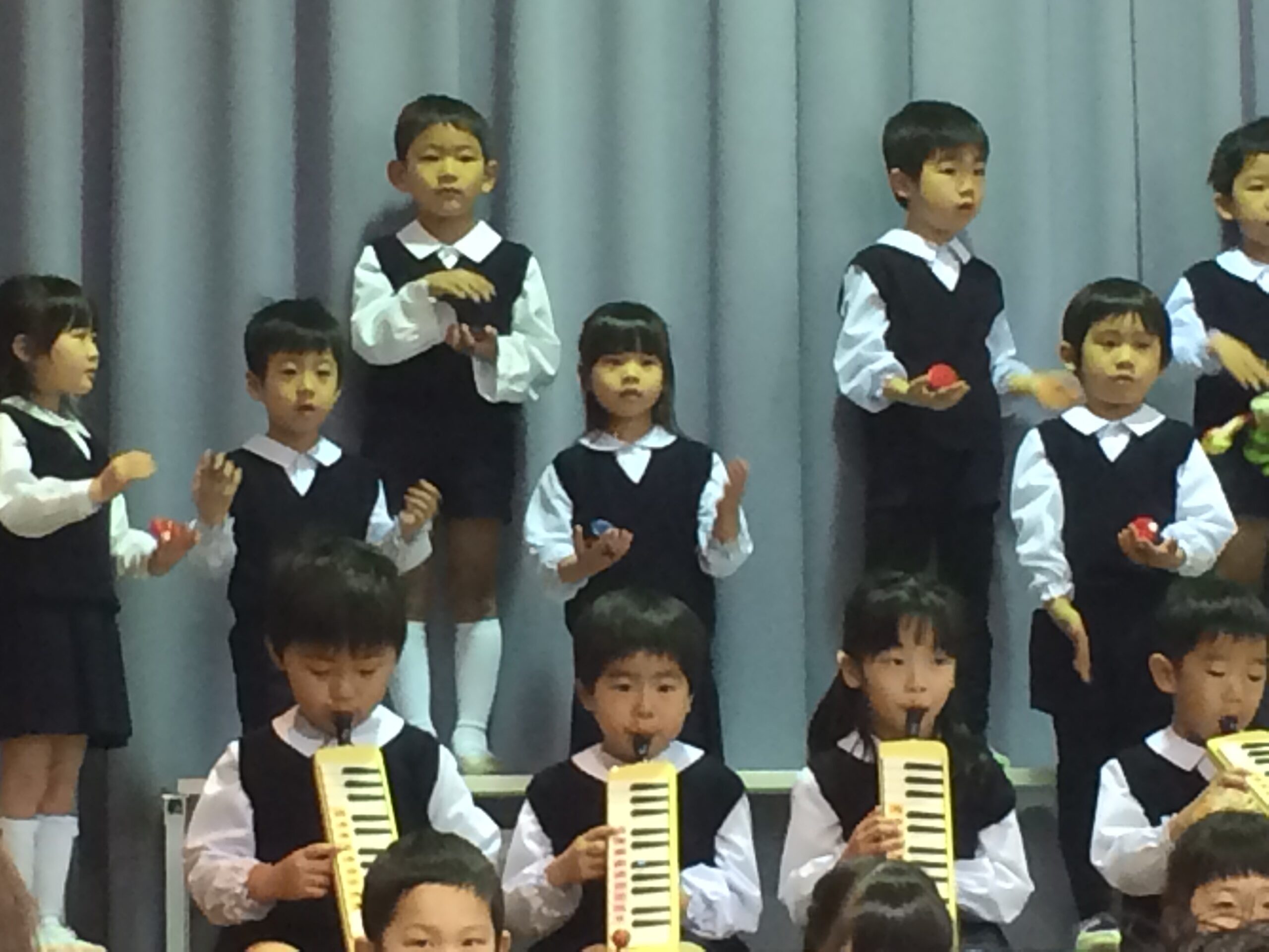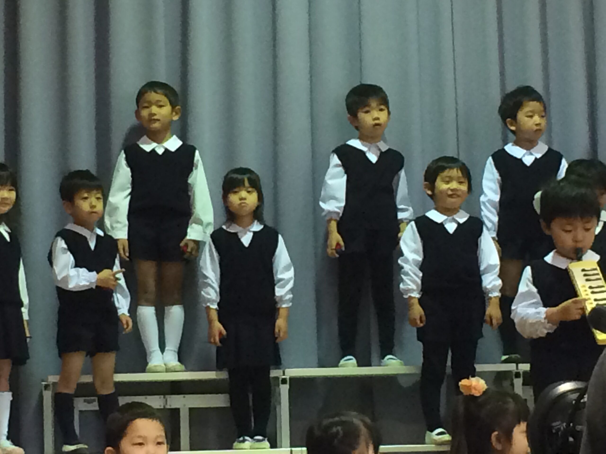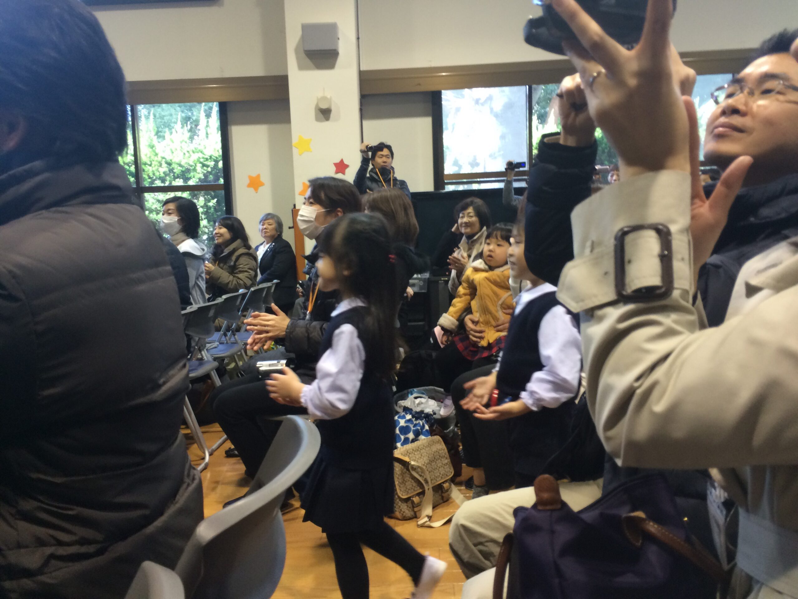 今日は音楽会。満員の観客席の間を通って園児入場!