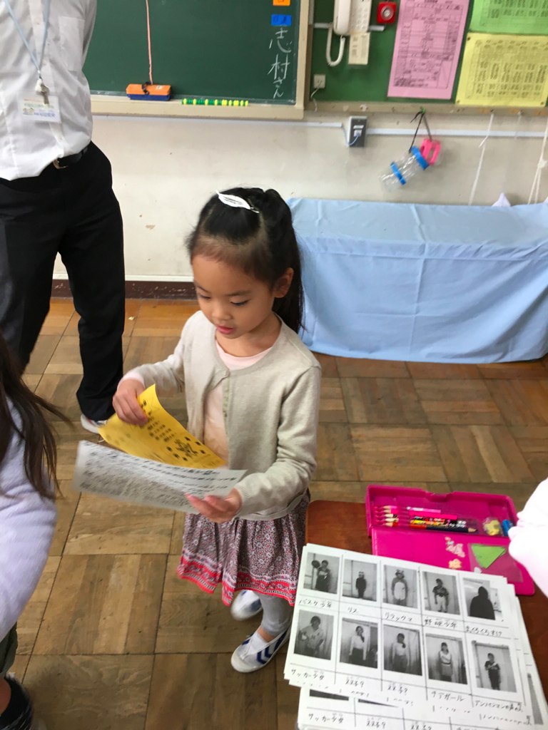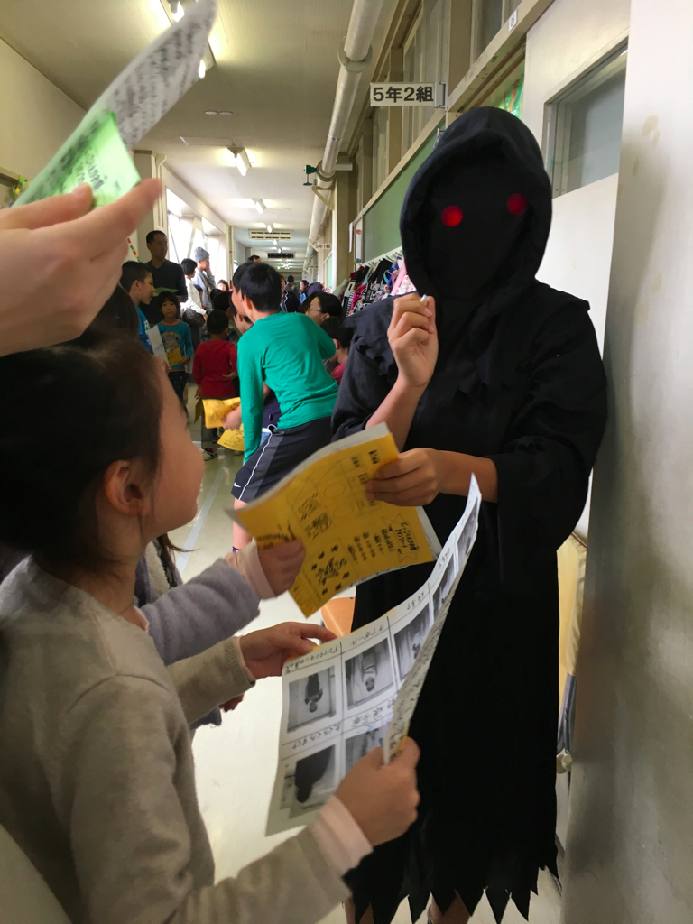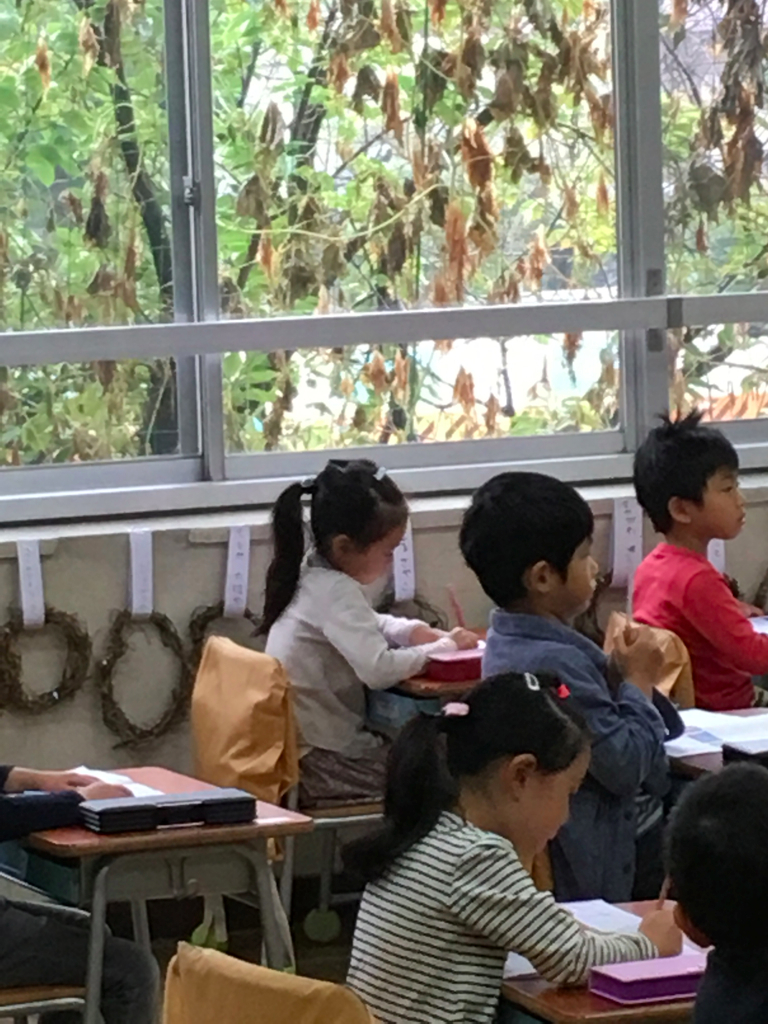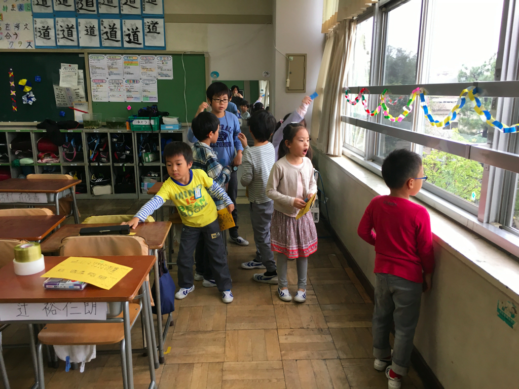 授業の後は、高学年のお兄ちゃんお姉ちゃんが催し物をしているので低学年は遊びに行きます。