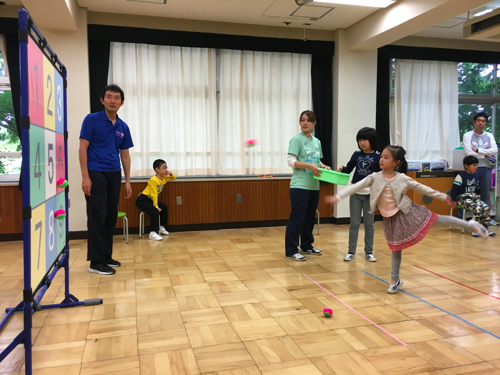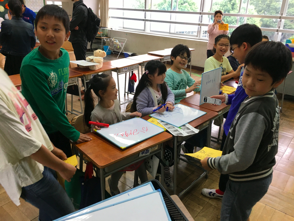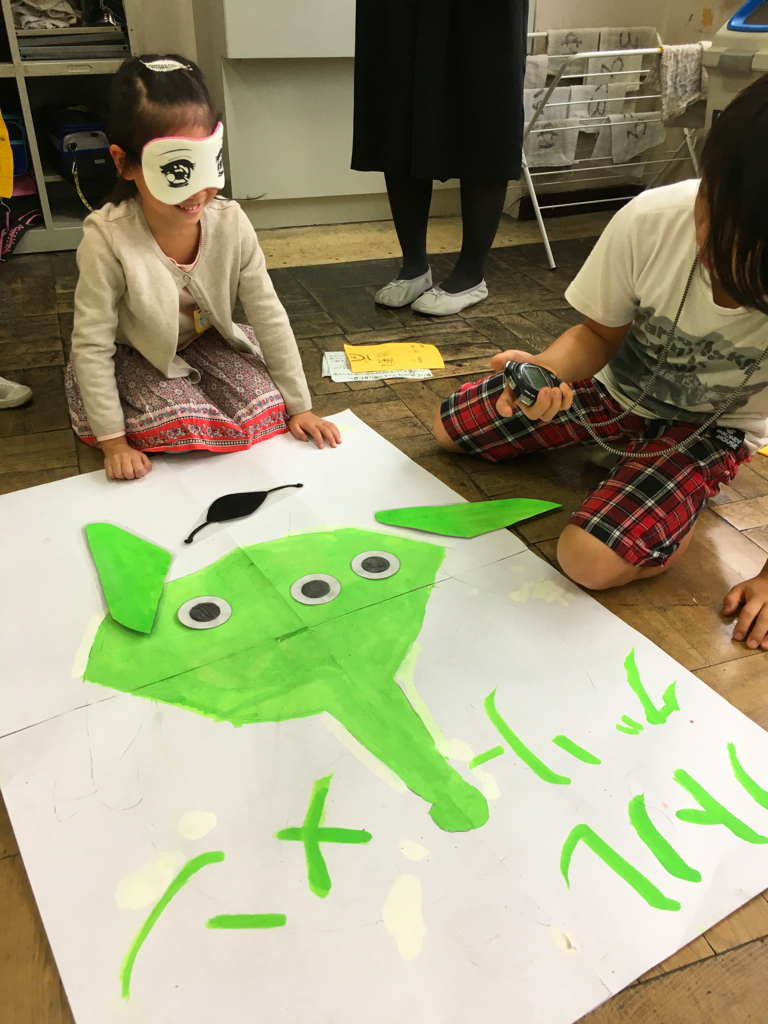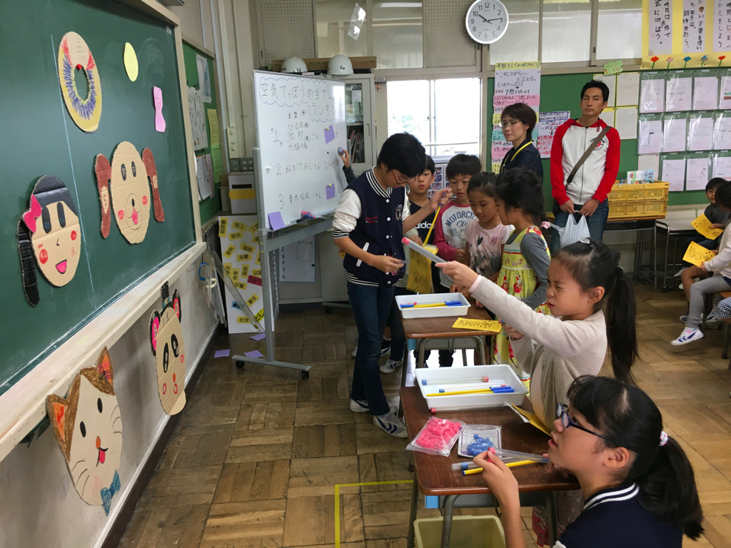 授業の後は、高学年のお兄ちゃんお姉ちゃんが催し物をしているので低学年は遊びに行きます。