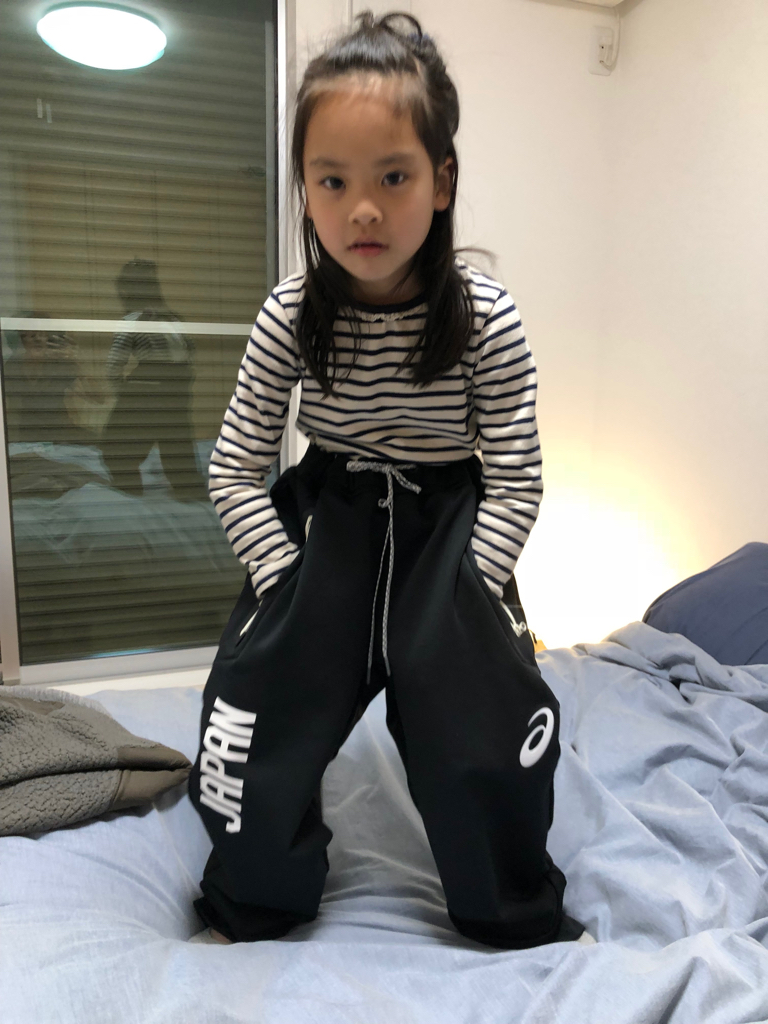 羽生選手と同じだ〜と喜ぶ海璃。歯がない。
