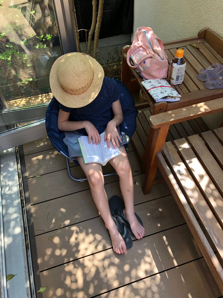 だいぶ夏に近い陽気、ウッドデッキでのんびり読書