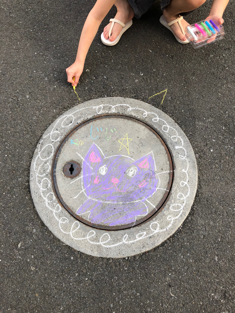 私道に絵を描く海璃画伯